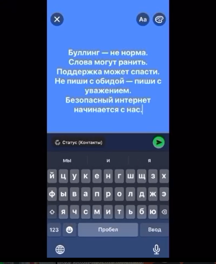 В ходе челленджа дети активно участвовали в заданиях, направленных на создание положительного онлайн-пространства. Они писали доброжелательные комментарии своим сверстникам, педагогам и друзьям, обсуждали влияние слов на настроение окружающих и учились контролировать своё поведение в сети. Воспитанники анализировали свои подписки и контент, отписывались от аккаунтов, вызывающих тревогу или раздражение, блокировали нежелательные материалы и делились друг с другом полезной информацией о ментальном здоровье и ресурсах по профилактике буллинга.