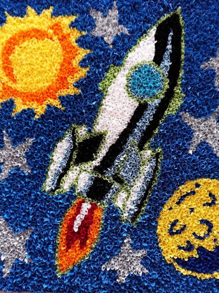 Подготовительной группой была выполнена аппликация в технике «торцевания из гофрированной бумаги» «Космическое путешествие» руководитель воспитатель первой категории Панферова Т.П.