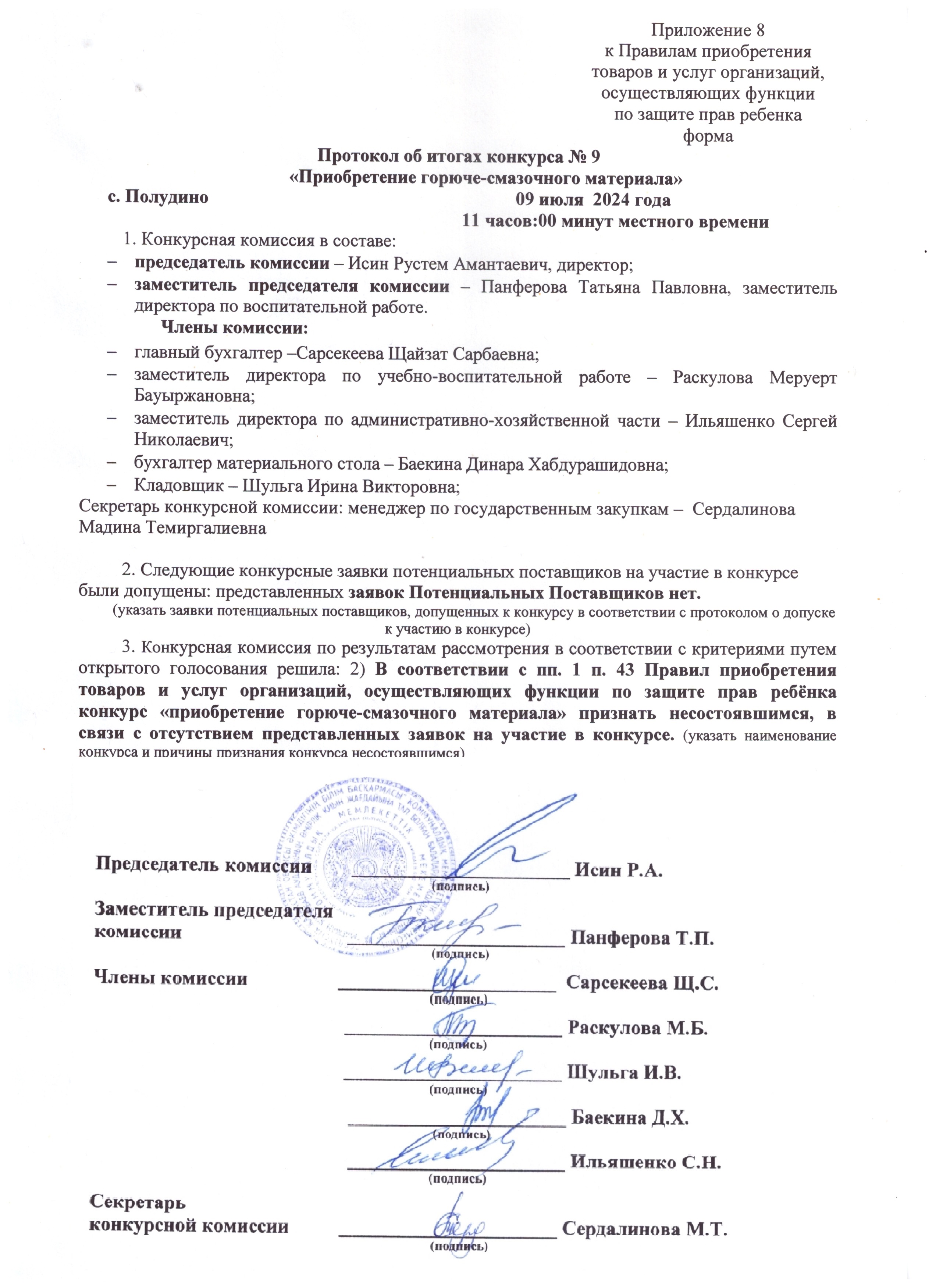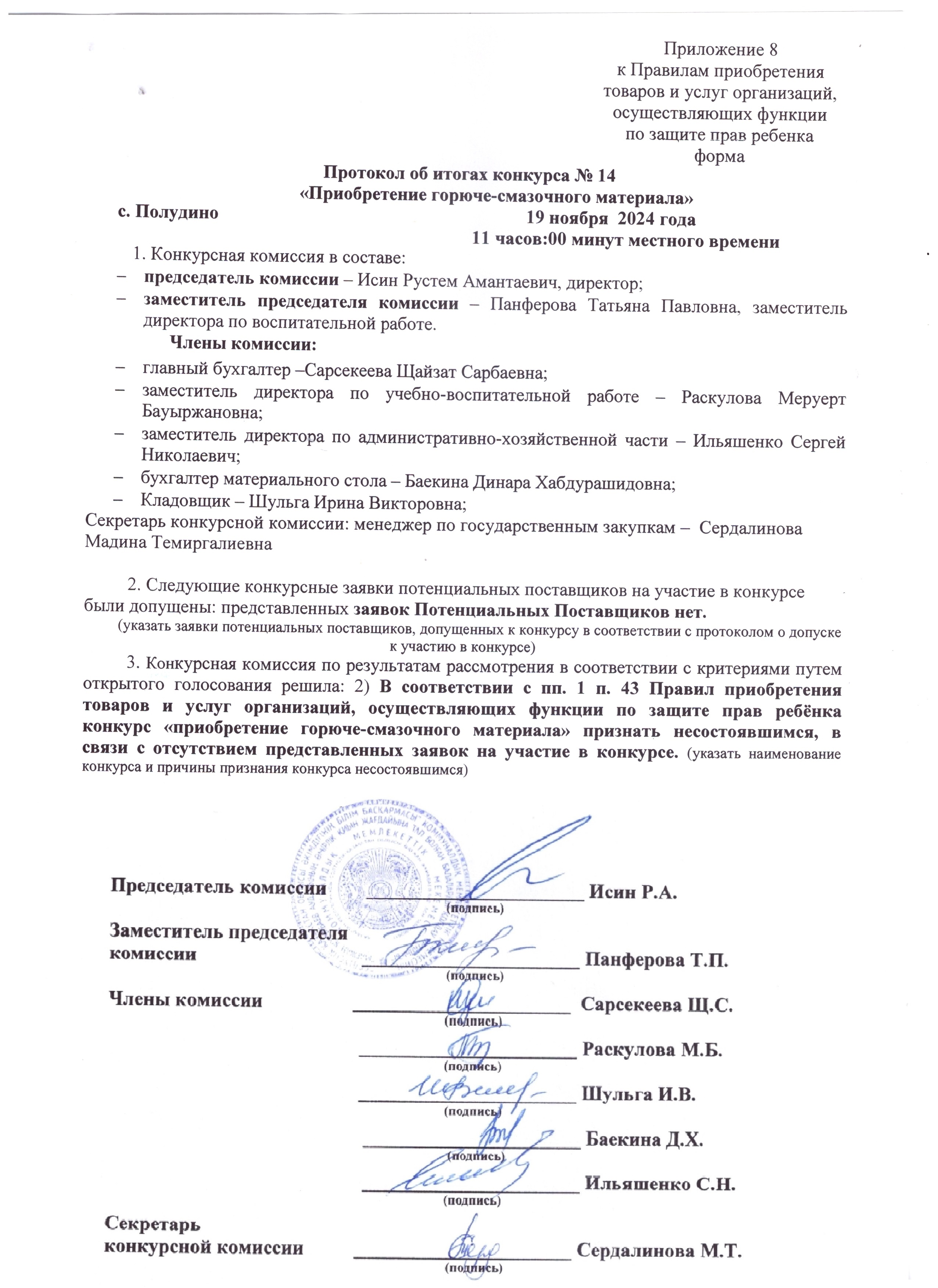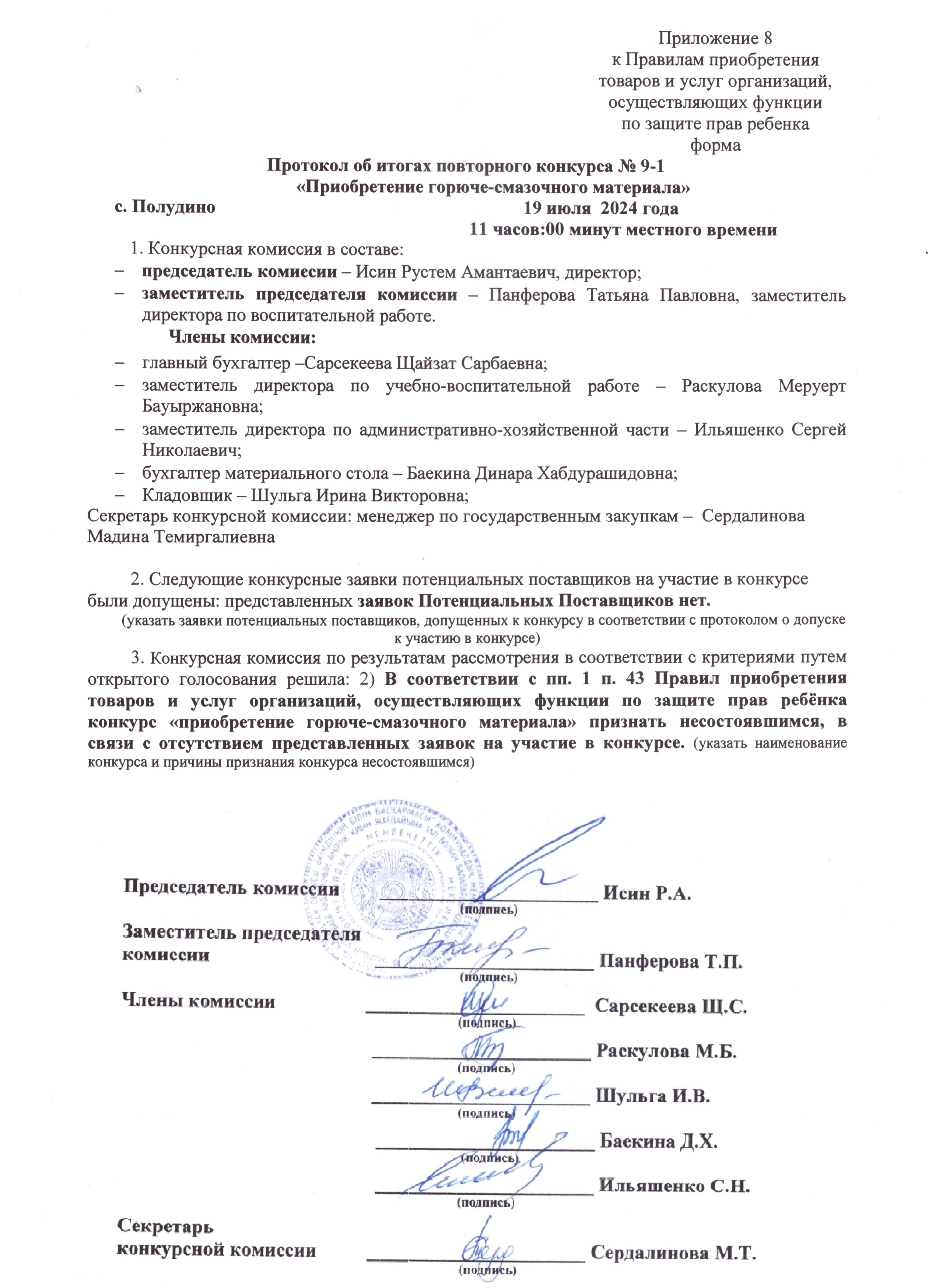 Протокол итогов повторного конкурса ГСМ скачать